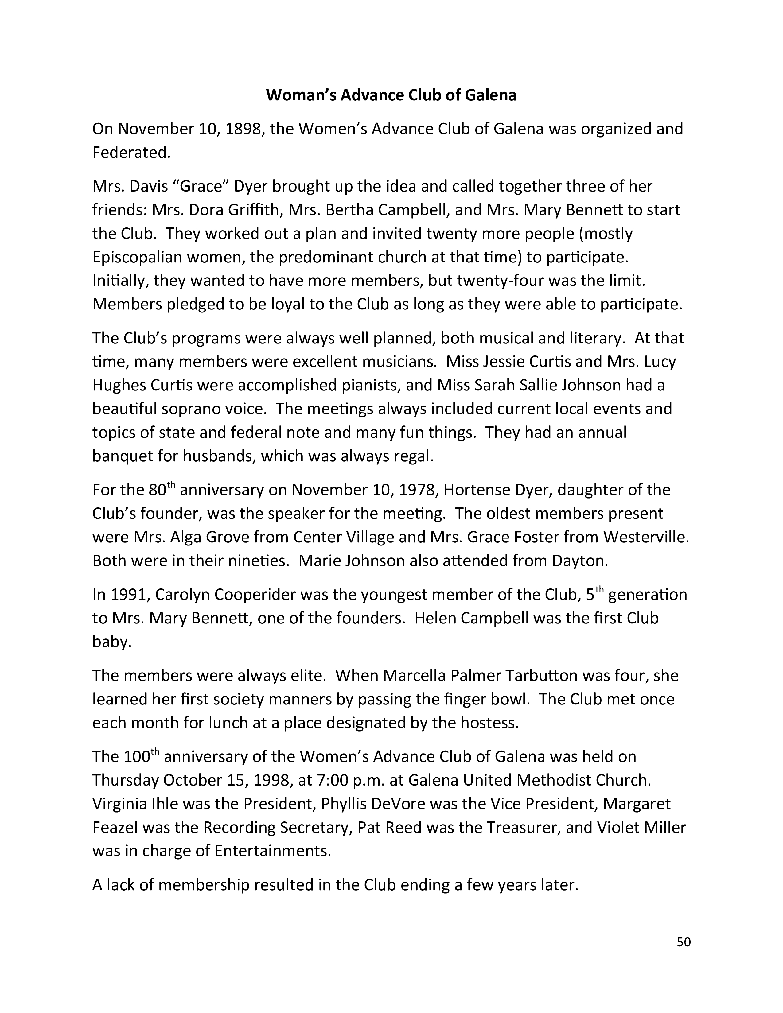 corrections will be brought to our attention so that the history of our dear Galena
