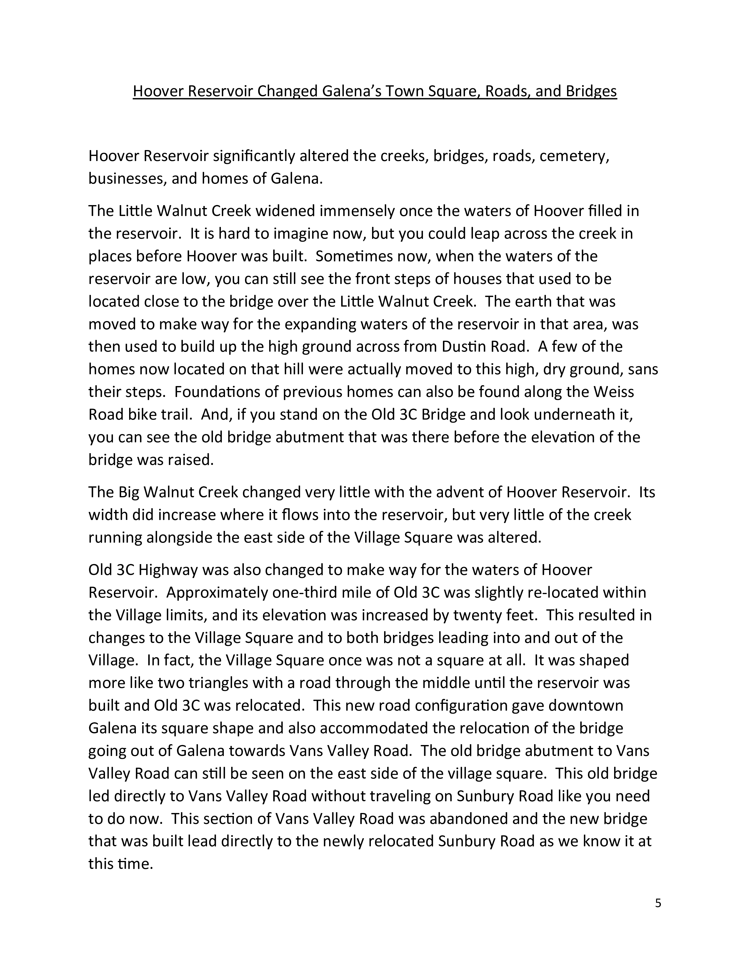 3. Hoover Reservoir and the Changes to Galena - page 5