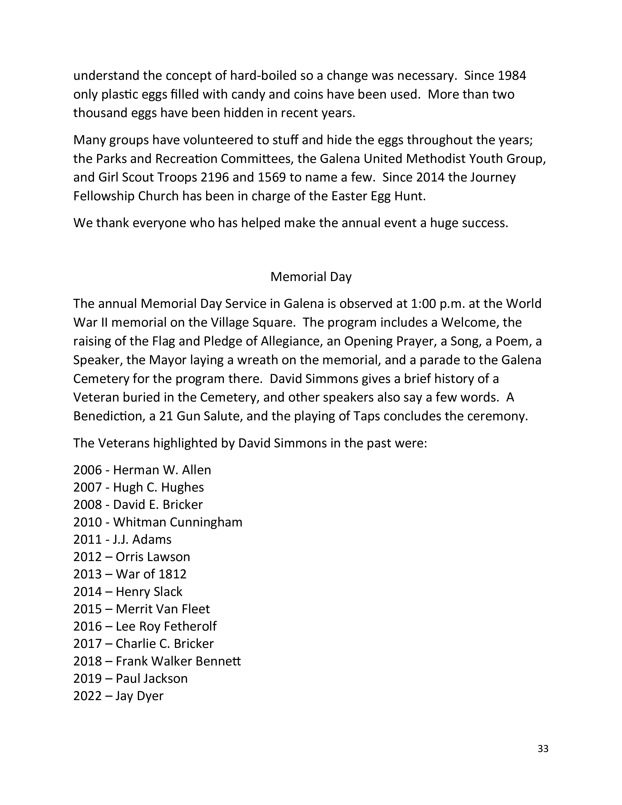 seventy years of our beloved Galena's history.
